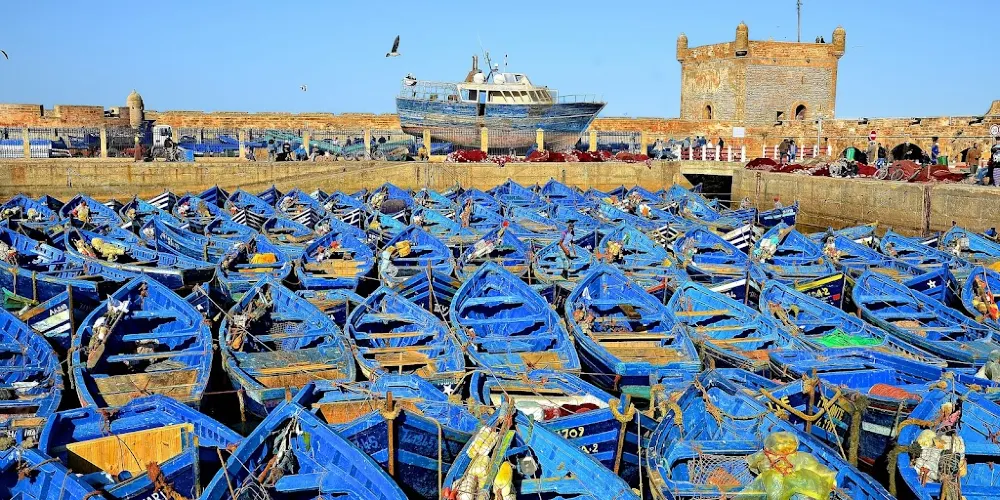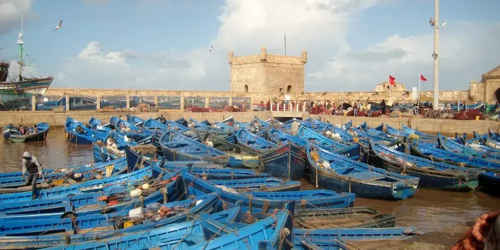 索維拉漁港是防禦城堡的天然良港,在這裡每日都在上演拍賣剛靠岸沙丁魚的"藍色集市"。推薦租借橘色膠靴深入碼頭,觀察柏柏爾漁民海草編織漁網的傳統技法。港區北側石階處可預約漁船出海,9月能偶遇遷徙的北大西洋灰海豹。 交通方面,可從馬拉喀什CTM車站搭乘早班巴士直達,終點站步行即可抵達。購買海鮮需自備零錢,可帶到港口燒烤攤代加工。隱蔽彩蛋在潮池觀測站,退潮時能觸碰到吸附岩壁的鵝頸藤壺。冬季是攝影的好時節,逆光中的藍色漁船與粉紅色城牆形成強烈撞色。遊玩時注意避開正午的漁獲裝卸高峰期,重型拖網車會佔據主要通道。
