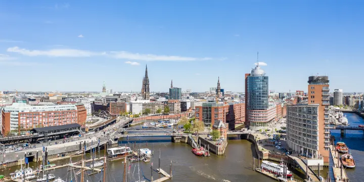 漢堡港位於易北河下游,阿爾斯特河和比勒河匯合處,是德國較大的海港,也是歐洲轉口港之一。漢堡港還是目前世界上規模較大的集裝箱港口之一,有數十個集裝箱碼頭,幾十餘台集裝箱起重機。乘船漫遊市內河道,或沿著易北河岸散步,沿路的牌子上面有彩色圖片及解說詞,為你介紹在岸口館及諾伊米勒之間漢堡港口的過去與未來。