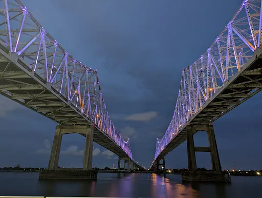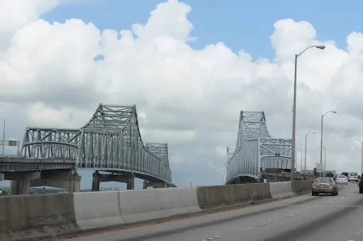 新奧爾良港地處密西西比河的咽喉地帶,是美國重要的河海、海陸聯運中心。新奧爾良港建於1718年。多座大橋跨越密西西比河兩岸。著名的龐恰特雷思湖堤壩長達39公裡,溝通市區與湖北岸的聯繫。有1個國際機場和2個國內機場。