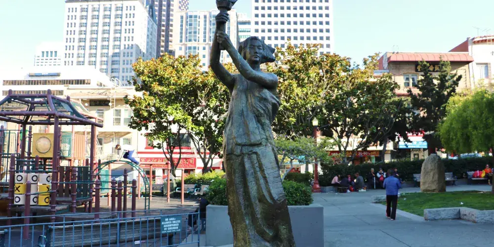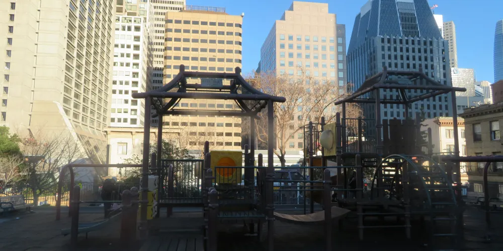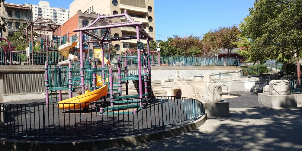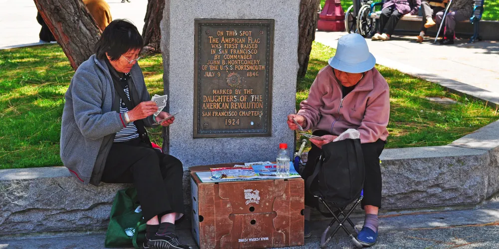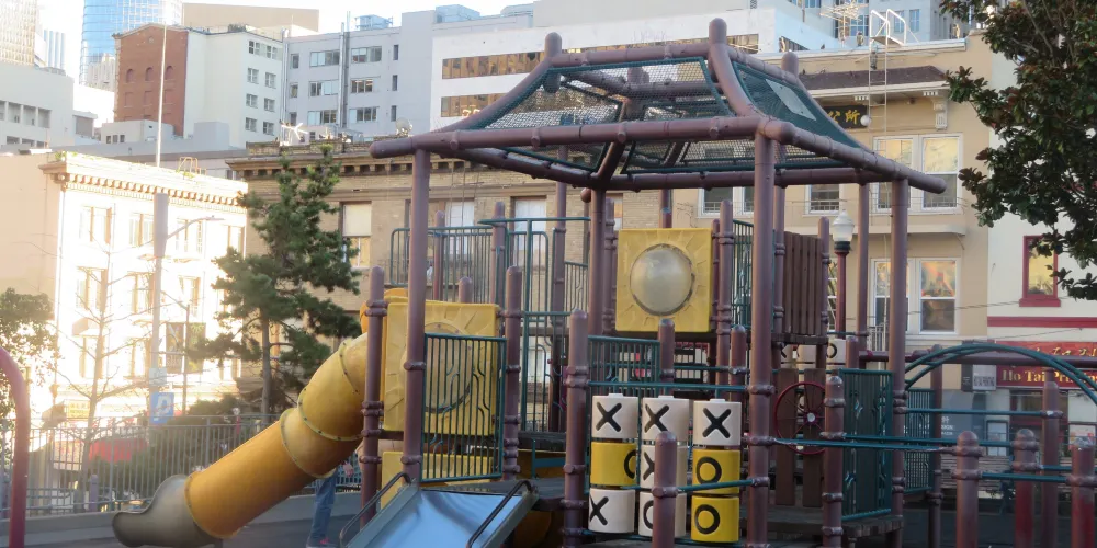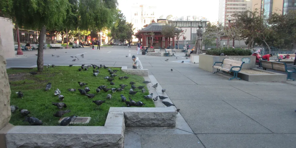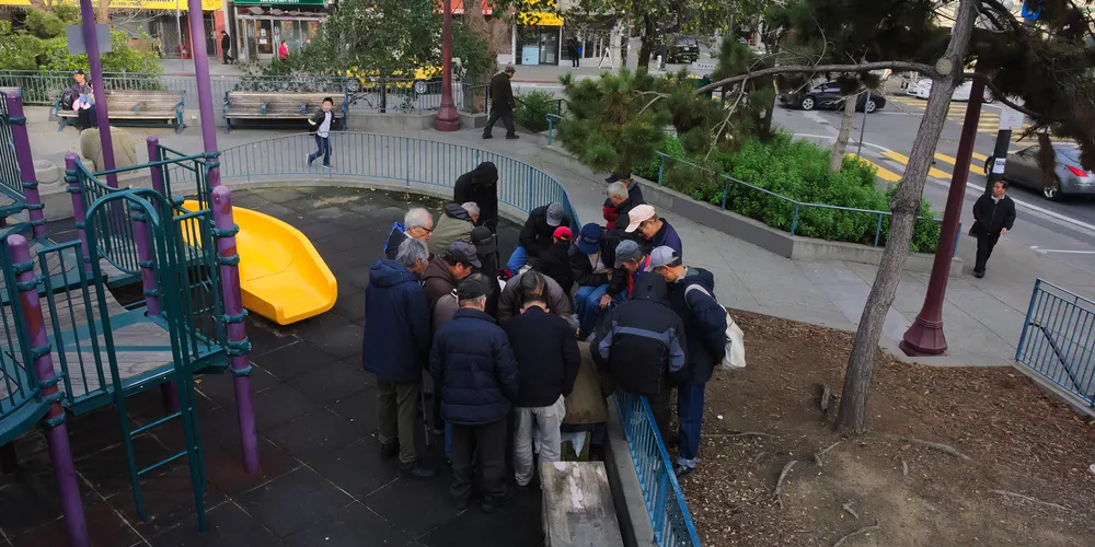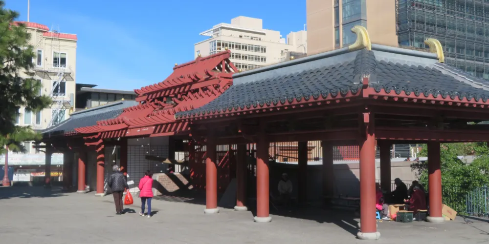 太極拳和中國象棋有什麼共同點?他們都在花園角積極練習。花園角是舊金山唐人街的廣場。孩子們在廣場上嬉戲玩耍,毫不在意這個地方的歷史,它是由羅伯特路易斯史蒂文森紀念碑或蒙哥馬利司令於1846年7月9日在舊金山升起美國國旗的紀念碑等所展現出來的。今天,花園角是華人社區的中心,從7月底到10月,每週六都要舉辦唐人街夜市。