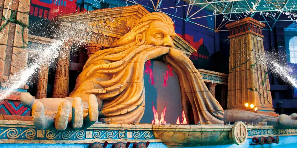 海神的「聖獸之家」,重現古羅馬地標性建築圓形競技場,場內「聖獸」海豚如「角鬥士」般以高難度技巧及整齊動作,施展渾身解數,征服現場每位觀眾。精靈般的空中舞者在夢幻唯美燈光下,融合多種藝術形式與多重情感體驗,呈獻一場穿越時空的視覺盛宴。
