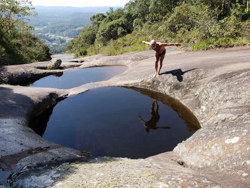Pedra Azul State Park是個自然美景與生態體驗兼具的旅遊目的地,非常適合喜歡山林風景與戶外探險的遊客。這裡吸引人的,是那塊名為藍岩石的巨型花崗岩岩石,它嵌在山間森林中。人們之所以叫它藍岩石,是因為早晨或日光角度不同的時候,岩石的色調會顯現淡淡的藍色,有時帶有微妙的橙色或粉紅色,與植物、地衣和日照一起,讓岩面顯得色彩絢麗又神秘。公園內部覆蓋著茂密的亞熱帶雨林,植被豐富,從苔蘚、蘭花、鳳梨科植物到大型樹木都有,野生動物也頗多,如猴子、犰狳、小型哺乳動物和各種鳥類,安靜中時常能聽到森林的聲音與鳥鳴。遊客可以走不同難度與長度的健行路線,有的只是輕鬆地漫步至「Lagarto」(意為蜥蜴形的岩石結構)和「Mirante」(觀景台),近距離感受風景;也有挑戰性較高的長路線,可以登頂岩石,俯瞰整個地區的山巒與森林全景。途中還能探訪天然岩石水坑、溪流或岩石池。
