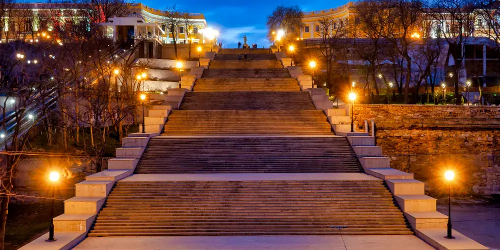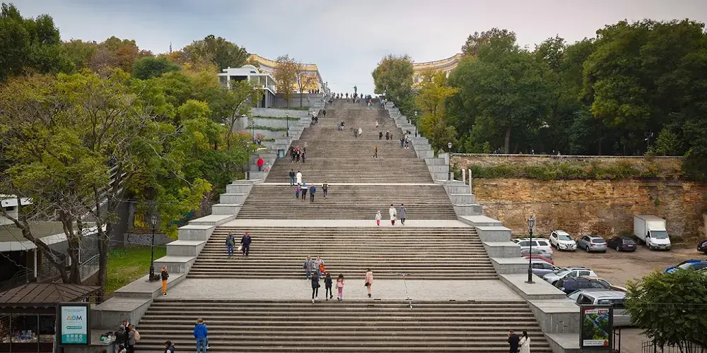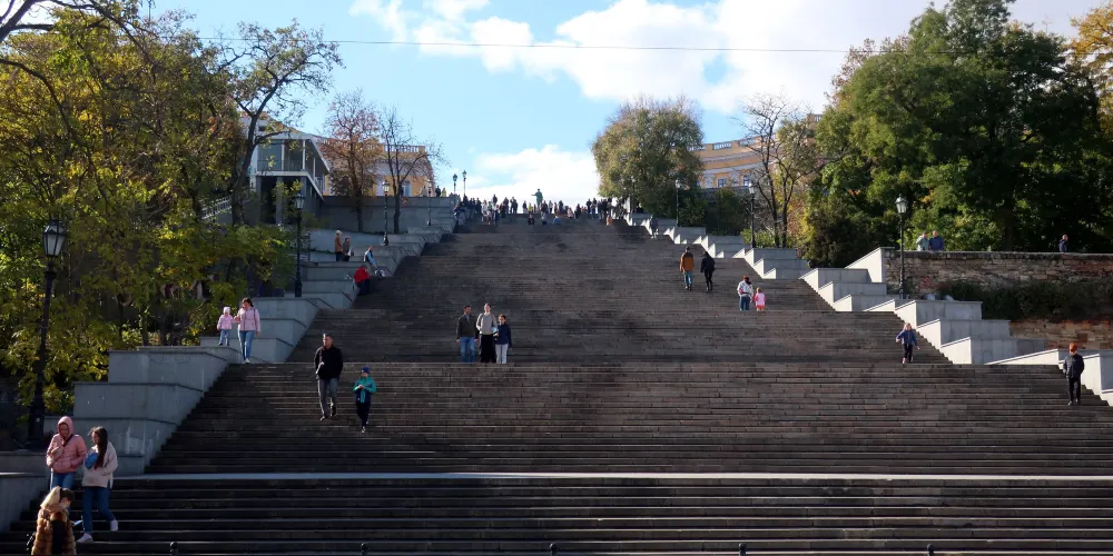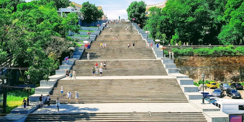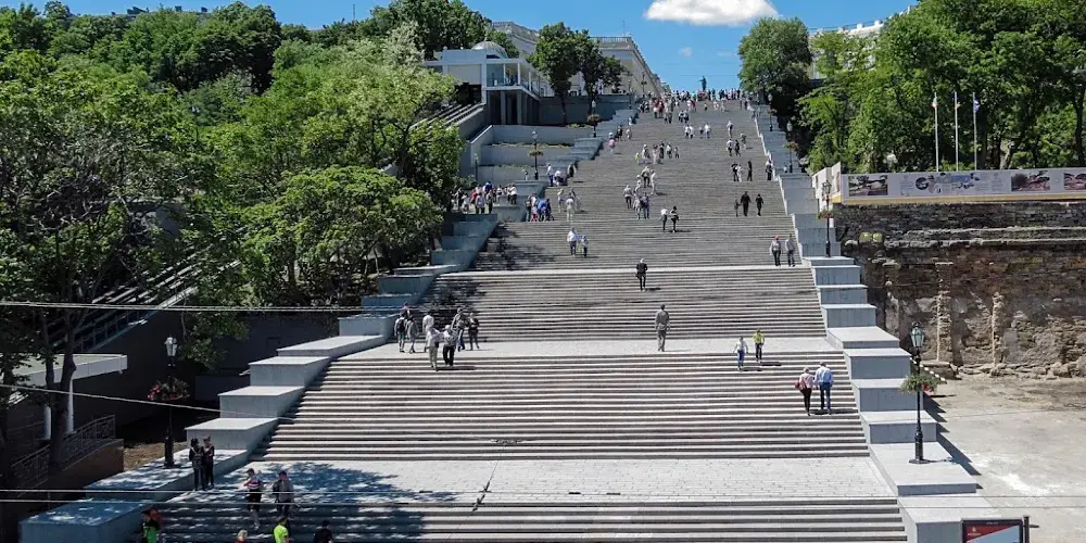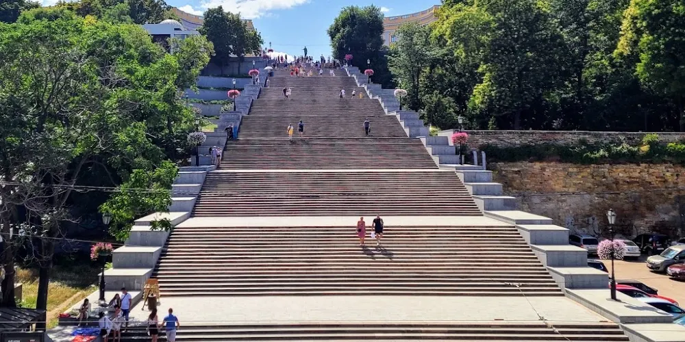這是敖德薩一處知名景點。在1925年的蘇聯影片《戰艦波將金號》中很經典的片段之一,並且留下了世界電影史上一次運用蒙太奇的記錄。“敖德薩階梯”也因而成為世界上較知名的階梯之一。從市中心半圓廣場通向海邊的“敖德薩階梯”共有192級,台階自上而下逐級加寬,站住高處,可以鳥瞰整個美麗的敖德薩港。