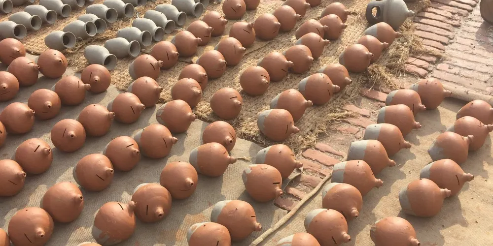 據說廣場曾經擁有很大規模,每天在此進行交易,現場製作,場面頗為壯觀。1646年一位富有的陶工捐資修建了位於廣場中心的Jeth Ganesh神廟,向人們反應了廣場周圍制陶活動的悠久曆史,直到今天廟裡的祭司仍從陶工種姓當中產生。但隨著時間的變遷,陶器已逐漸被當地人的生活所淘汰。故而廣場如今只剩下作秀般地攤放了一地的瓶瓶罐罐。
