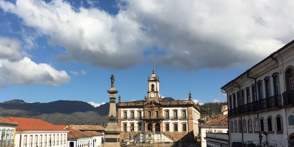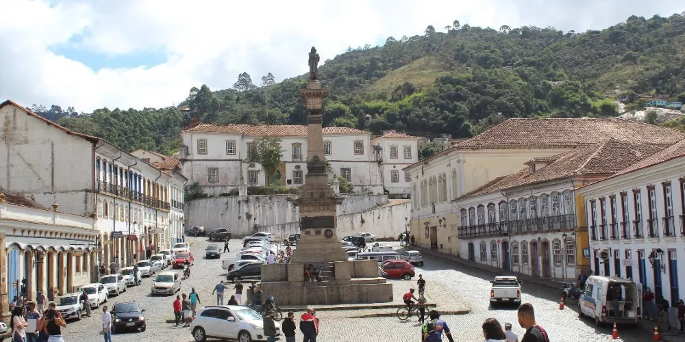 PracaTiradentes廣場位於歐魯普雷圖中心區域,廣場雖然不大,但是周邊有較多的店鋪,可以買到當地的紀念品店、寶石等,此外還有餐館、咖啡館等可以休憩、用餐。