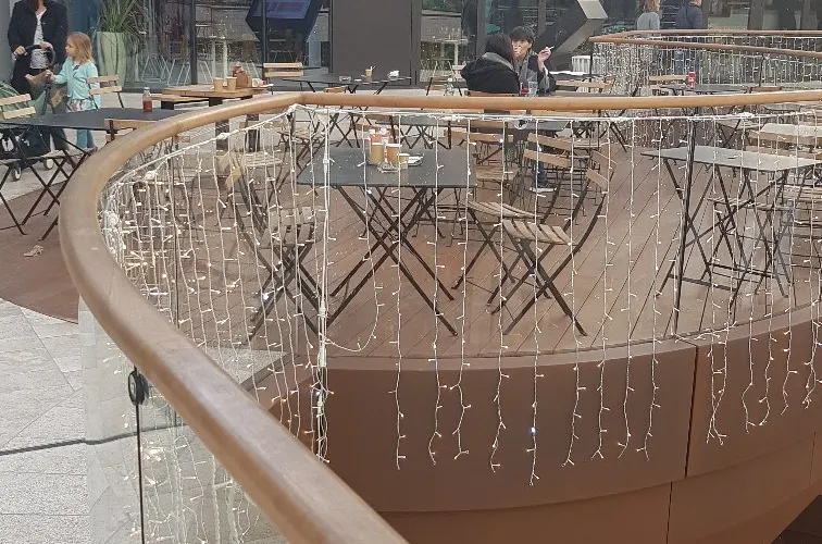 從不鏽鋼拋光鏡面的頂棚中倒映出周圍老港的景色,以及千百張駐足觀賞的遊覽者的臉龐,營造出一種奇異的美感,這不僅僅為遊客提供一個駐足遮雨遮陽的場所,還讓遊客在欣賞老港風景時,自己也能成為景觀的一部分。