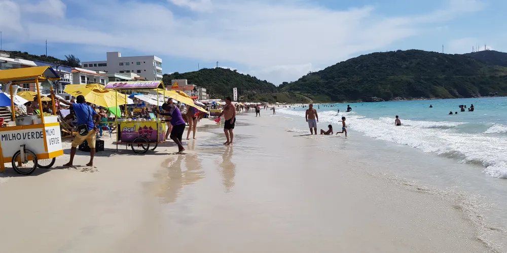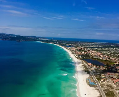 巴西阿拉亞爾 - 杜卡布的 Prainha,它位於阿拉亞爾 - 杜卡布的黃金地段,一進入這座城市,你首先看到的便是 Prainha 那迷人的景色。這片約900公尺長的海灘,以其細膩潔白的沙灘和清澈見底的海水而聞名,海水顏色在陽光下呈現出美麗的藍綠色調。由於地理位置的優勢,Prainha的海浪平緩,非常適合家庭遊客,海水能見度高,這裡也是潛水愛好者的理想目的地,遊客可以欣賞到豐富的海洋生物和珊瑚礁。 Prainha 的周邊設施也十分完善,海灘邊設有許多小亭子和休閒區,遊客可以在這裡品嚐當地的美食和特色飲品,享受愜意的時光。