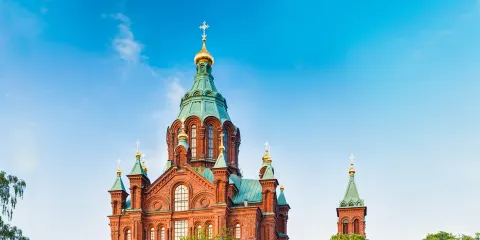 坐落於赫爾辛基參議院廣場前的赫爾辛基主教座堂是赫爾辛基較出名的建築,綠色的拱頂十分醒目,無論在市區的哪個角落都能看到這座器宇非凡的白色綠頂建築,因此也被稱為“白教堂”。
