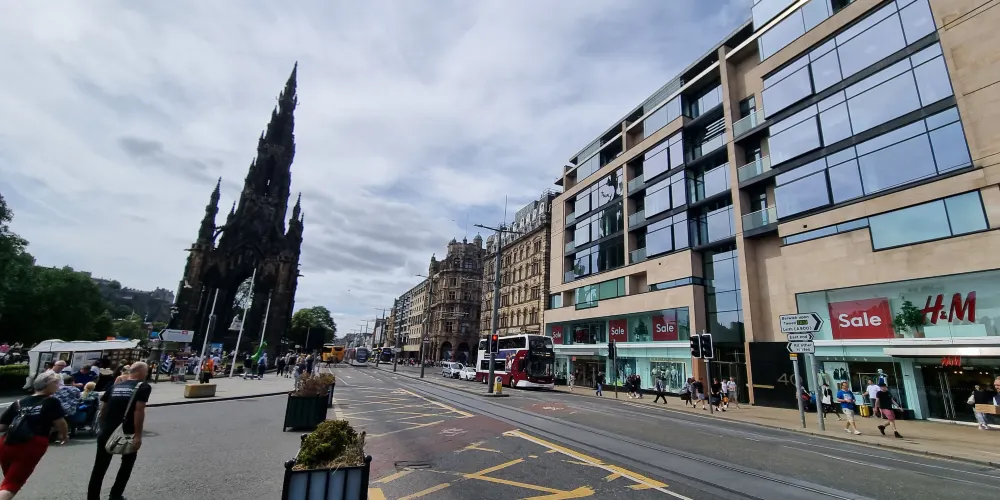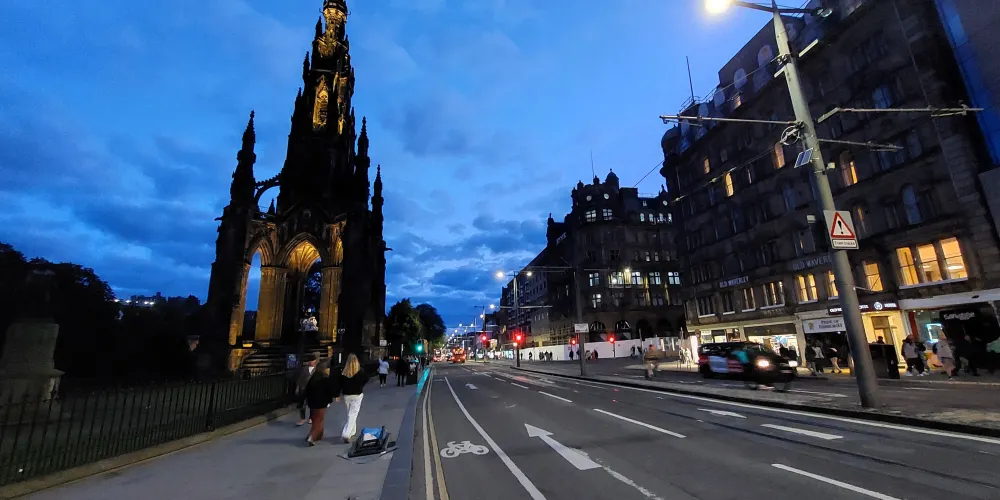 古堡下的王子街花園風景如畫,裡面屹立著蘇格蘭著名文學家司各特的紀念塔。在花園的另一塊綠地上,佇立著蜚聲世界的蘇格蘭鐘,其主要結構設於地下。通過其287級狹窄的階梯,可以到達尖頂上的觀景台,俯瞰愛丁堡市中心及周邊景色。晴天的時候,無論是當地人還是遊人都喜歡在花園寬闊的草坪或是長椅上曬太陽放鬆享受。