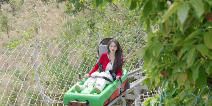 閑庭信步,緩緩走下407級台階或是乘坐刺激的森林滑道,乘坐滑車呼嘯而下,時而置身樹林,時而置身蒿草叢生的山野世界,時而置身於清香四溢的茶園,滑車轉彎時慣性帶來的“脱軌感”更是讓人心跳加速,大呼刺激。