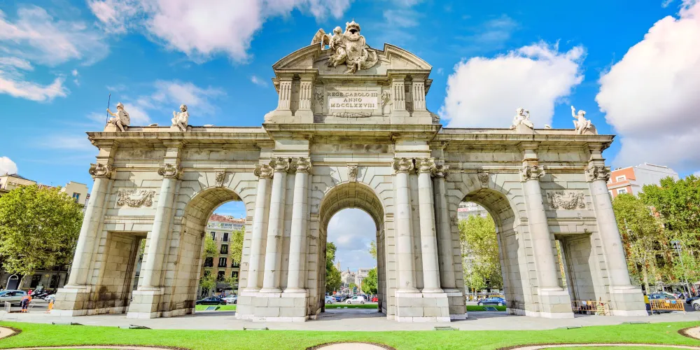 獨立廣場-阿爾卡拉門建於1788年,由卡洛斯三世下令建造,薩巴蒂尼為設計師,。是馬德里現存完好的古城門之一,曾經是19世紀時馬德里的東側邊界標誌。