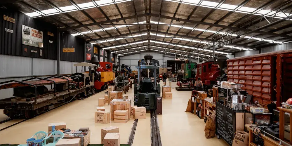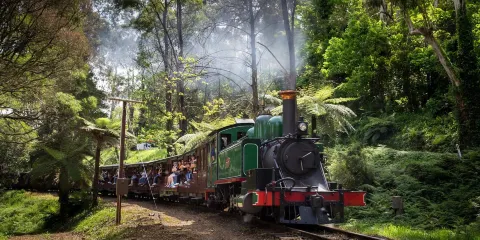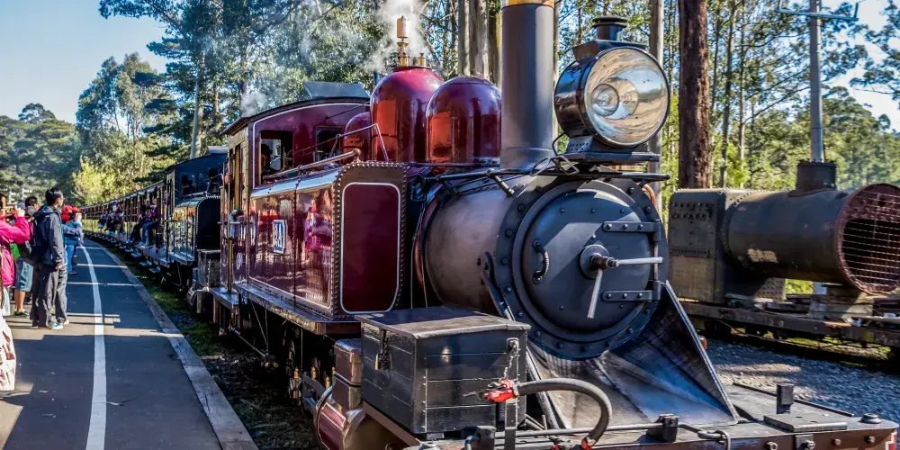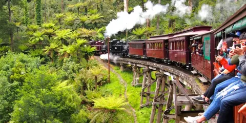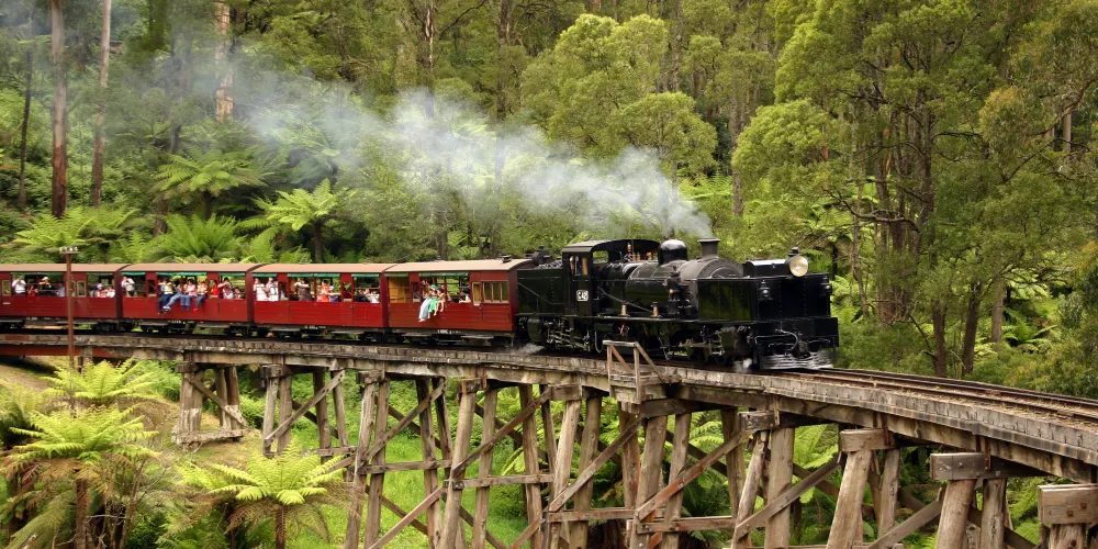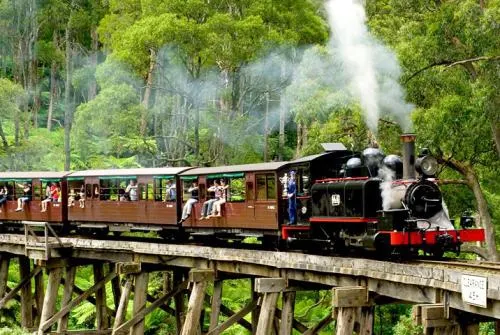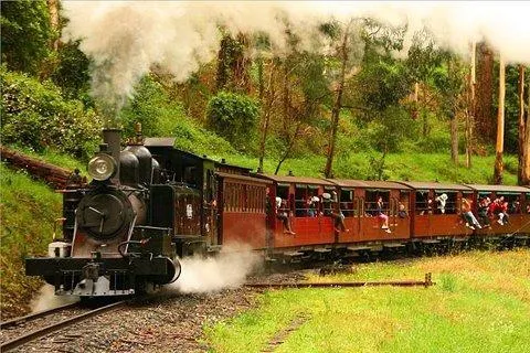 普芬比利蒸汽火車是建於20世紀之交的一條實驗性窄軌鐵路。它是澳大利亞歷史悠久的蒸汽火車,也是世界上保存較好的蒸汽火車鐵路之一。火車行程24公里,途中從貝爾格雷到丹頓農山脈一路經過美麗的森林和長滿蕨類的溪谷,兩側開放的車廂可以欣賞沿途的美景,比如普芬比利鐵路線較為著名的地標——蒙布克溪棧橋。此外,沿途還有許多可供乘客下車遊覽的車站。