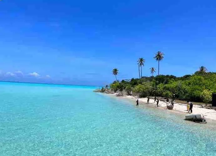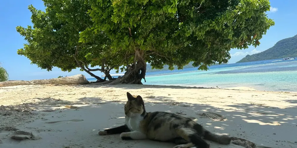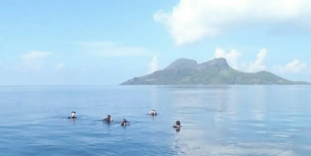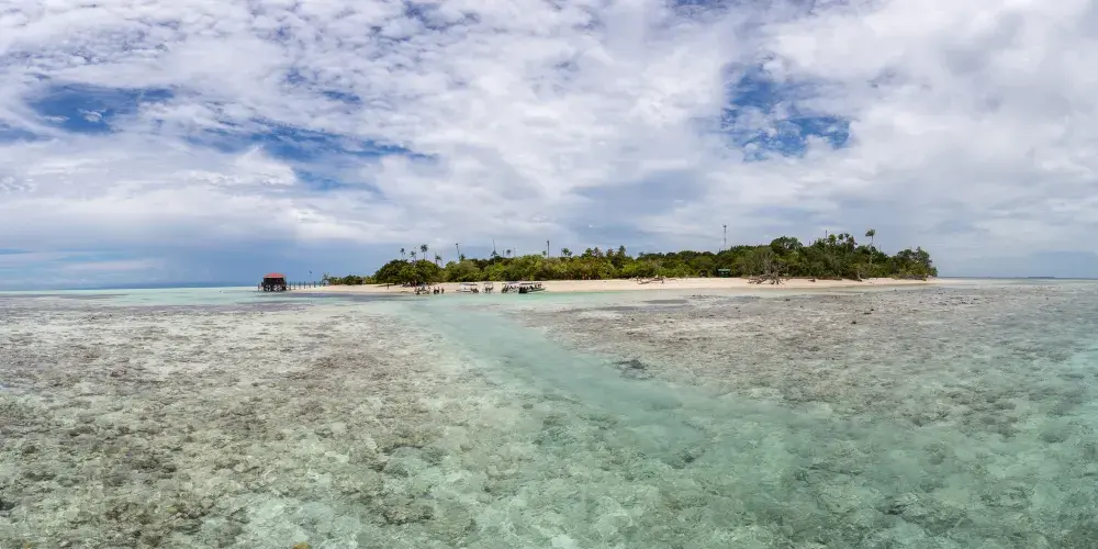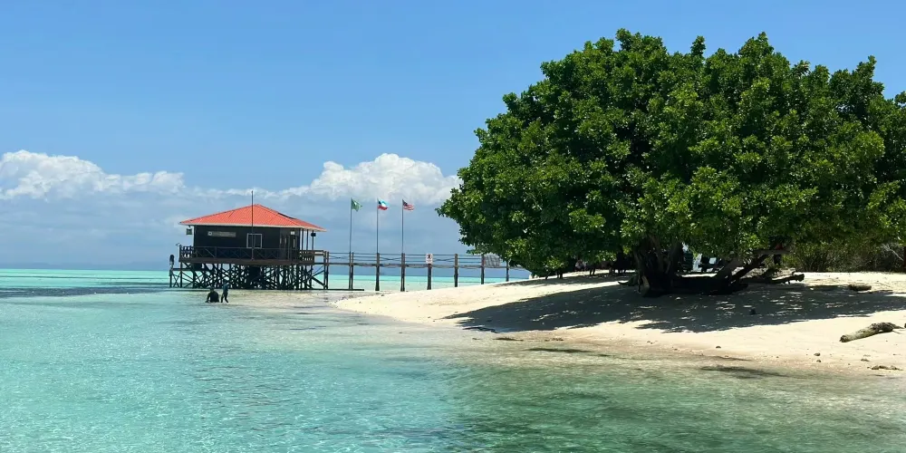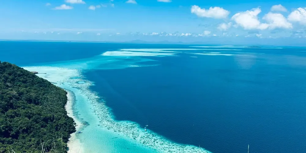 它是敦沙卡蘭海洋公園群島的第二大島嶼,島上有熱帶雨林,是犀鳥、鷓鴣等各種鳥類的家園。珍珠島山頂觀景台是其標誌性景點,遊客需徒步 600 公尺登頂,約 1 小時,途中山路較陡。登頂後可 360° 俯瞰敦沙卡蘭海洋公園的琉璃色海水,深藍與薄荷色交織,景色美不勝收。珍珠島週邊海域能見度超高,是浮潛的絕佳地點,遊客可以看到珊瑚、海龜、小丑魚等豐富的海洋生物。此外,這裡也提供玻璃船劃行等活動,適合親子遊玩。