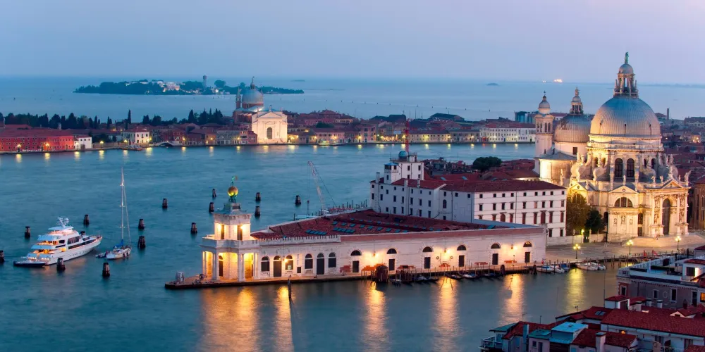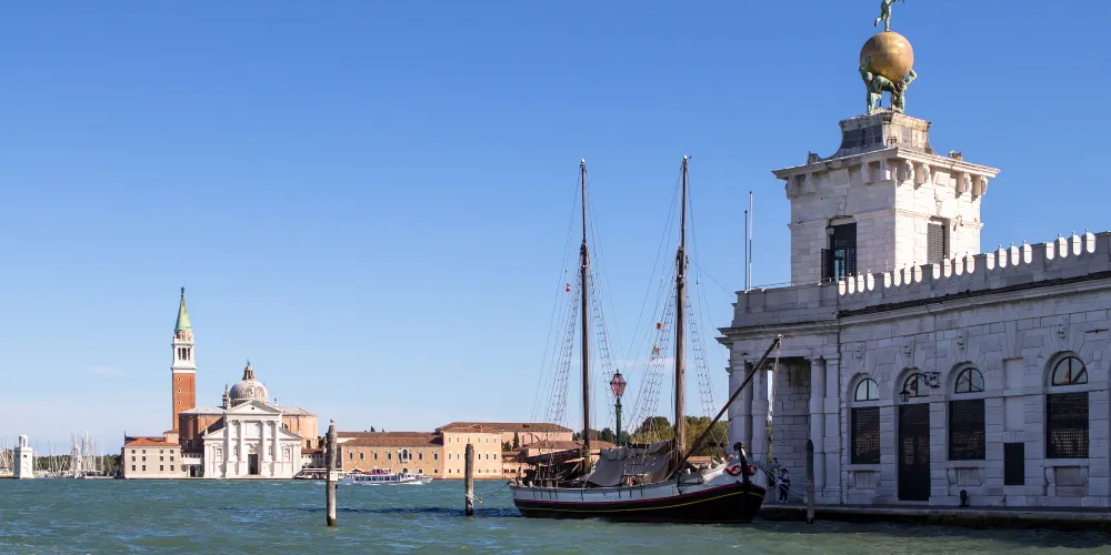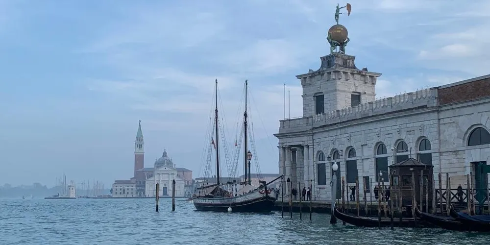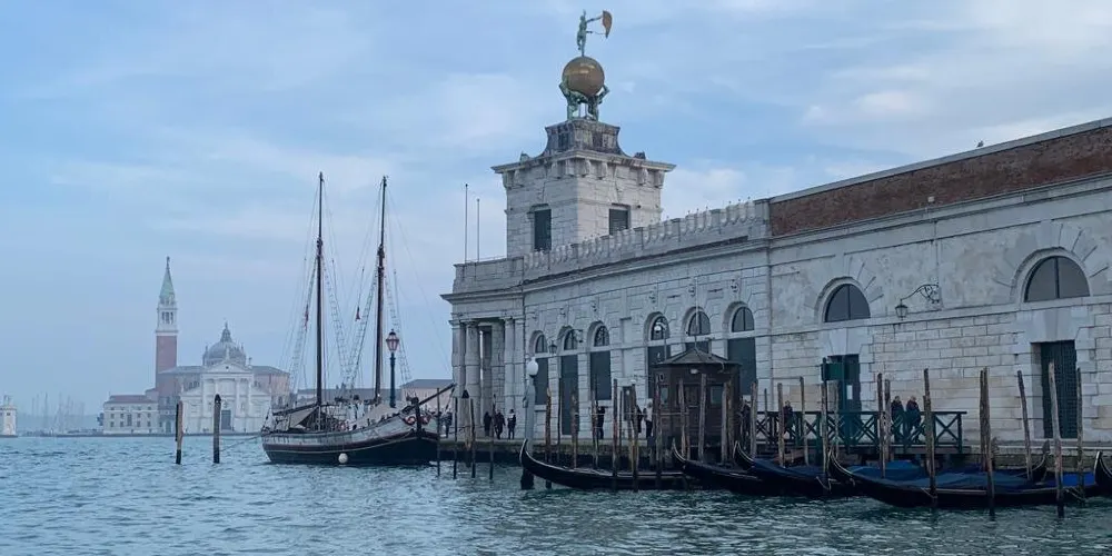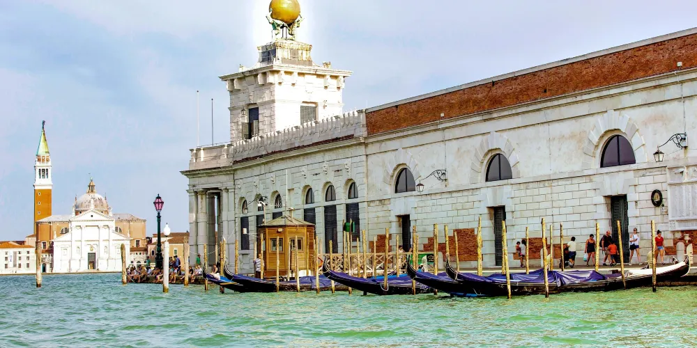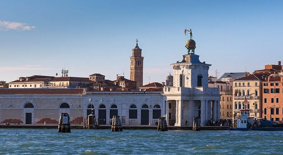 威尼斯海關大樓矗立在著名的威尼斯聖馬可廣場對岸杜所杜羅島最前端的多格那角,是威尼斯地標性的曆史建築。15世紀時,為了應對日益繁盛的海上貿易與方便往來船隻報關納稅,海關大樓應運而生。在1677年時海關的尖塔建成,即屋頂上豎著一座小塔。小塔上面有兩個奴隸塑像,一齊擎著一個巨大的鍍金天球,天球上有一女神鵰塑,女神是用一隻腳站立的,可以隨風轉動,表示人無論是在海上還是在事業中都要隨著事物的變化而變化。現在的海關大樓已變成一座專業博物館。