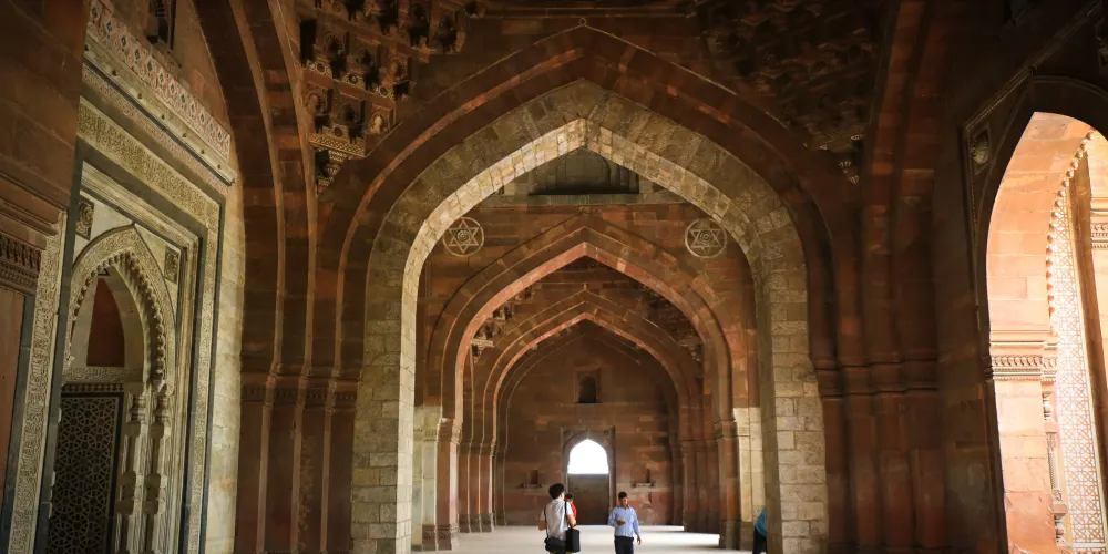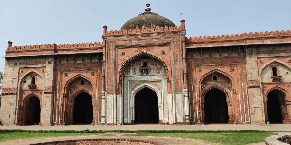 古城堡是莫臥兒第二代國王胡馬雍的居所,不遠處是印度門和胡馬雍陵,可以順道參觀這裡。城堡周圍有一條護城河,現已成為遊人泛舟的好去處。城堡建築由紅砂岩構築,正門堅固宏偉,南門兩座對稱的角樓十分别致。綠樹環繞下的庫恩納寺庙是莫臥兒早期建築風格的體現。城堡內出名的是舊時的圖書館,胡馬雍就是在圖書館的樓梯上失足跌落意外去世的。