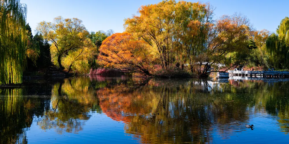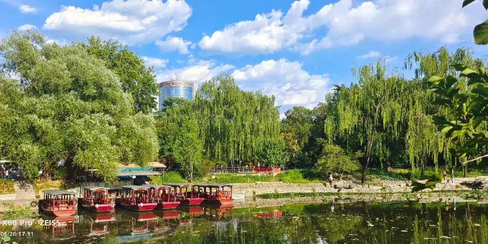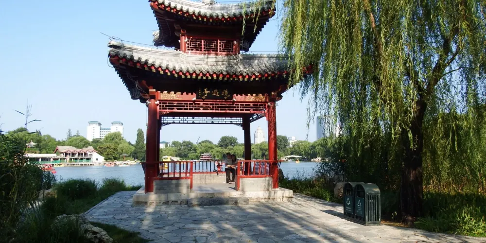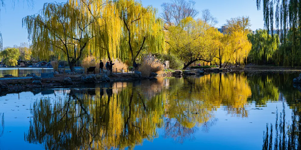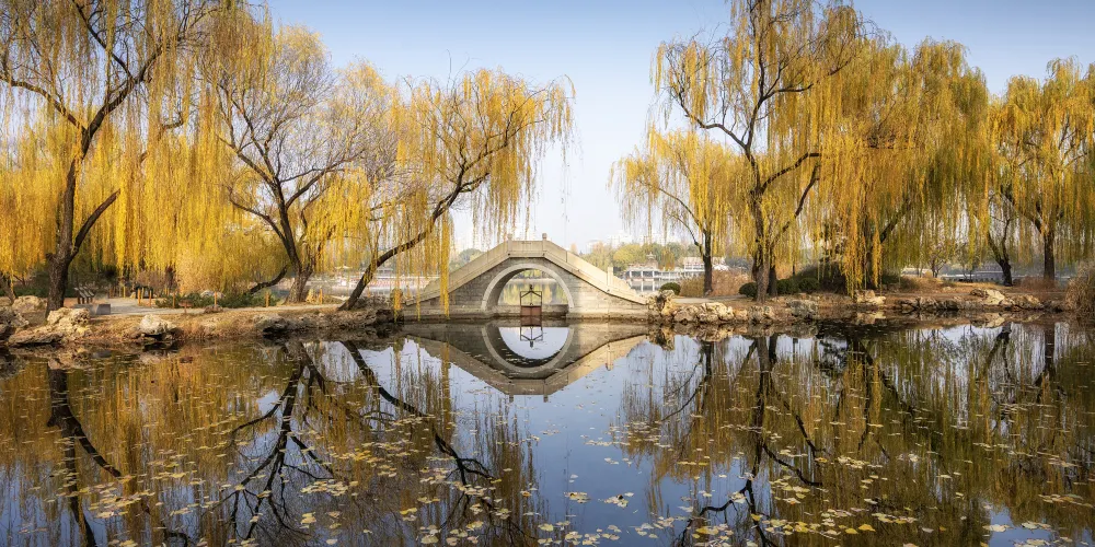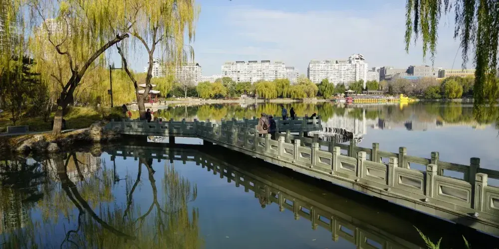 「讓我們蕩起雙槳,小船兒推開波浪…」,這首耳熟能詳的歌謠描繪的正是此處。北海位於故宮博物院西北側,與「中海」、「南海」合稱三海。公園曾是皇家園林,園內亭台錯落有致,湖畔林木鬱鬱蔥蔥,風光如畫。