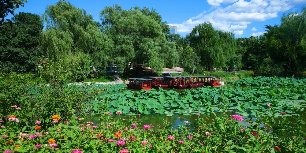 初到什剎海風景區,第一眼必定被大片瀲灩的湖光所吸引。夏天湖邊非常清涼,荷花盛開,可以坐船欣賞湖景。沿湖碼頭不少,有前海的好夢江南碼頭、荷花市場碼頭,後海的野鴨島碼頭、柳蔭爭渡等碼頭,都有遊船可以坐。