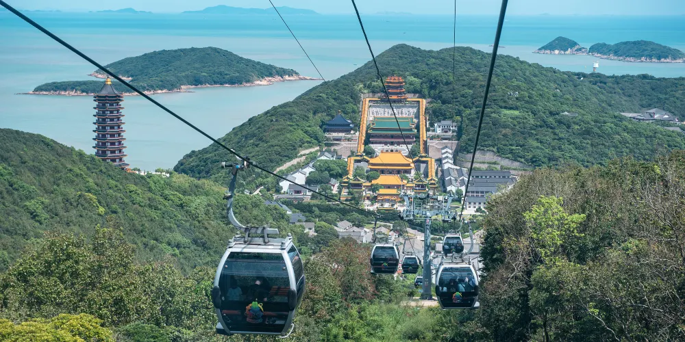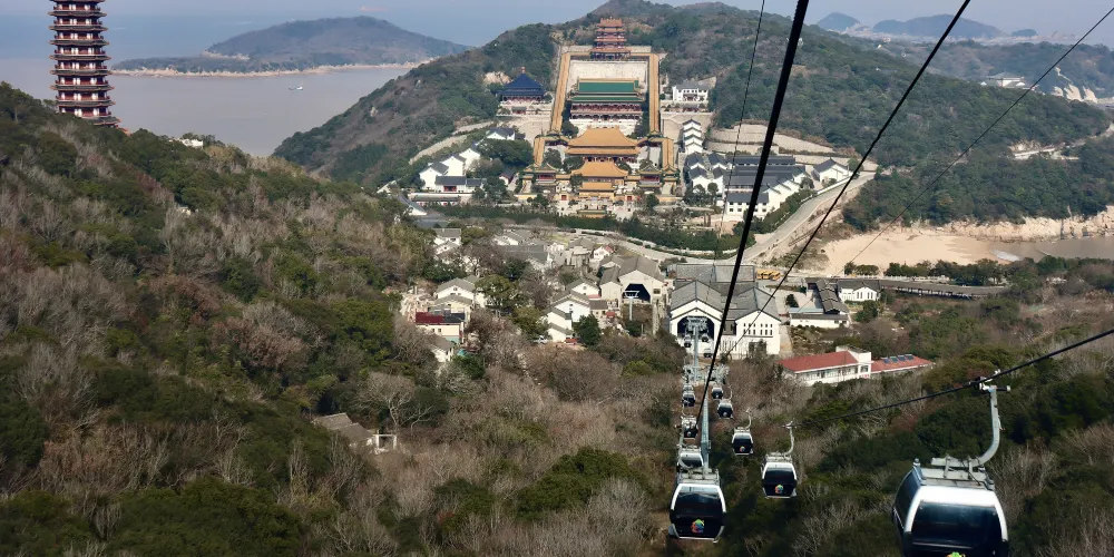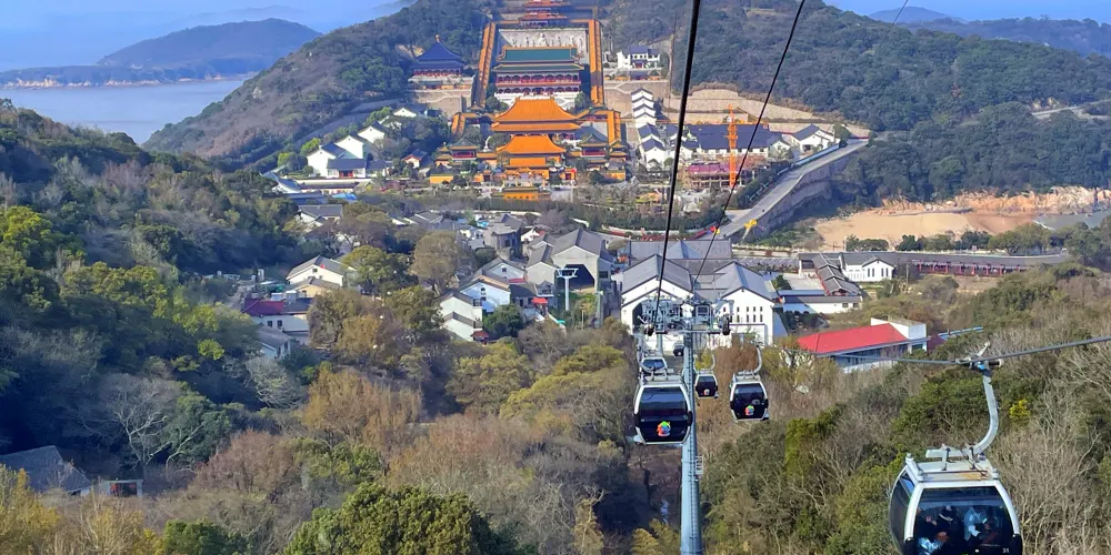 舟山市普陀山風景區-千步大沙是普陀山風景區上較大的沙灘,位於普陀山風景區東部海岸,北端離法雨寺不遠。從南面的幾寶嶺北綿延到東北的望海亭,總長近2公里。舟山市普陀山風景區-千步大沙要比它南邊的普陀山風景名勝區-百步沙更為開闊,而且沙質更為細膩,是踏浪觀海的好地方。