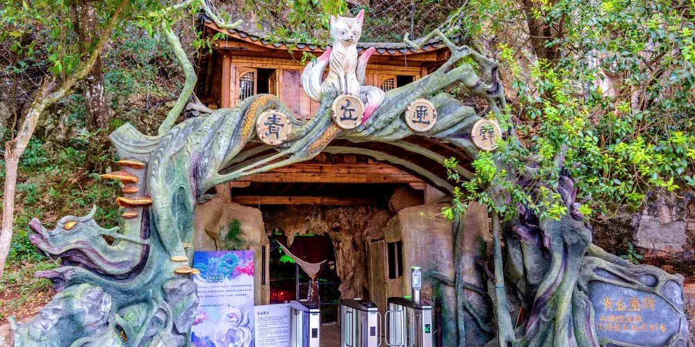 普者黑青丘畫以神奇的巖溶峯林地貌、高原湖羣、田園風光生動地再現了一個現實版的遠古青丘。以洞、水、光、影、形、樂、演綜合呈現中國上古神話譜系。