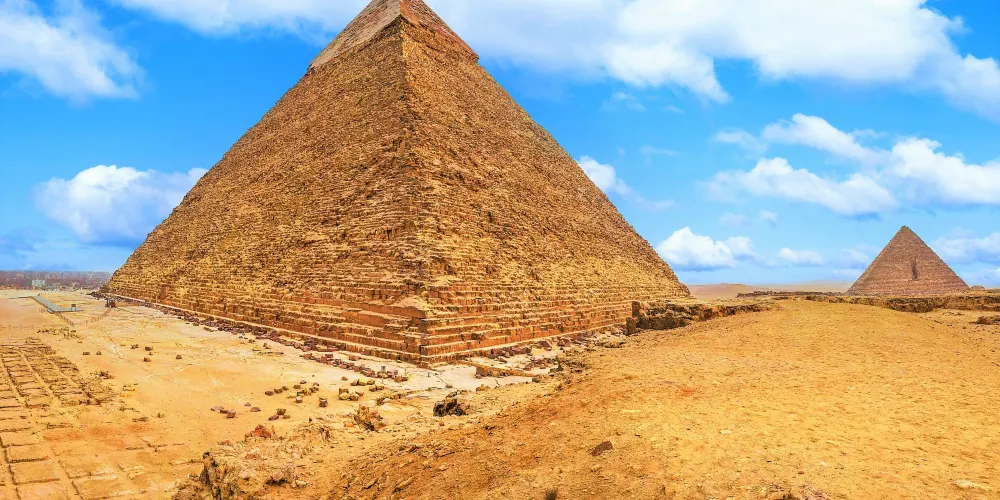 卡夫拉金字塔是吉薩金字塔群中的第二大金字塔,僅次於胡夫金字塔,也是唯一保有石灰岩原始塔頂的一座,其塔頂雖已斑駁,卻給後人留下了金字塔最原始的面貌。