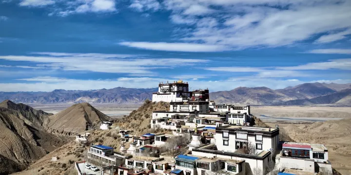 強欽寺在日喀則仁布縣境內,海拔3800米。建於1432年,屬黃教寺廟。寺內供有紫銅鑄成的強巴佛像,高13米,為西藏三大強巴佛之一。強欽寺曾以薩迦派為主,同時還信奉格魯等教派。到了第五世阿旺羅桑嘉措執政的時期,該寺改為格魯派,是十三座宗教寺廟之一。該寺的主供佛為未來佛,殿內供有後藏三大未來佛像之一的鍍金未來銅佛,高約十三米。未來佛藏語稱為“強欽”,故該寺取名為強欽寺。1984年,寺廟修復了一個大經堂、四個殿堂。未來佛殿供有新塑的未來佛鍍金銅佛,大經堂供有過喀巴師徒三尊。在貢巴加布日山頂上,依然可看到當年仁布法王夏宮廢墟。每年藏曆一月一日至十五日,該寺舉行大神變節,藏曆七月十五日,舉行三天的跳神節宗教活動。