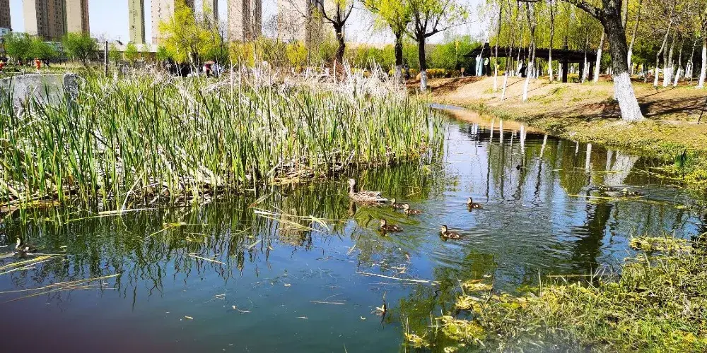 公園總面積29.8萬平方米,其中濕地面積10.8萬平方米,濕地公園規劃分為3個部分,西側為水塘莆地區,該區域包括4個魚塘,中部為濕地體驗區,該區域修建一條600米的木棧道,讓遊客可以深入濕地,近距離體驗,同時圍繞濕地建設1.5公裡的環湖路;東部為果樹花卉區,該區域有1萬多平方米的果園,並有各種花卉奇石。漫步濕地公園步步是景,讓人流連忘返。