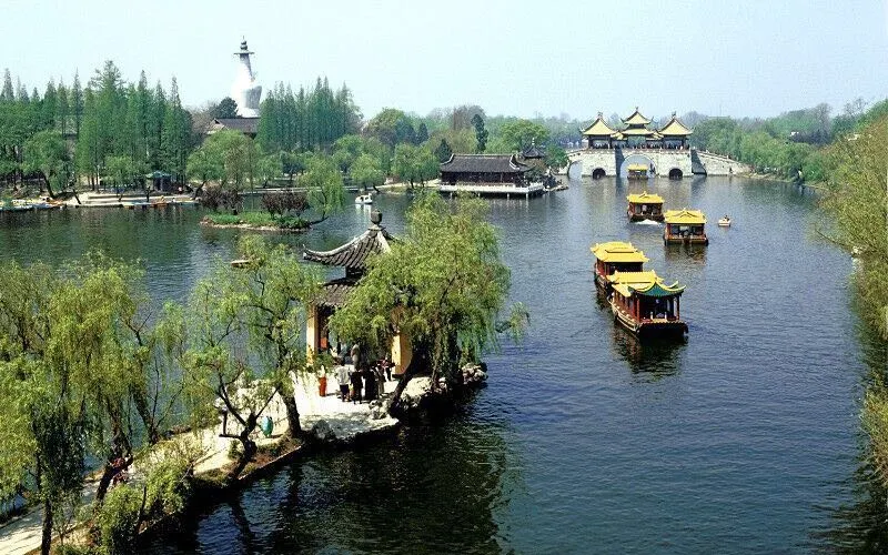 乾隆水上遊覽線船上遊程時間約30分鐘,船上配備瘦西湖景區電子講解,船行水上,瘦西湖景色風光如山水畫卷般呈現眼前。遊船行至瘦西湖二十四橋景區上船,可根據自身情況自由安排瘦西湖景區內岸上遊覽時間。