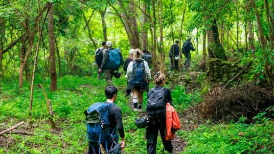 洞穴探險不同於常規的觀光旅遊,因為我們將會進入原生態的自然溶洞。所以在開始探索之前我們需要在大本營完成必須的行前培訓。在行前培訓中我們將學會如何穿戴個人安全裝備,包括頭盔,頭燈,探洞服,安全帶等。並且領隊會介紹我們此行的教練團隊,講解必要的安全知識。所以行前培訓非常重要,認真參加行前培訓可以讓我們的探險之旅更加得心應手。完成行前培訓以後,我們就正式開始了探險的旅程,從大本營出發,需要徒步大約10-20分鐘即可到達洞口。這一段路是我們探險行程的一個熱身,大家可以通過一小段徒步充分激活身體,為後面洞穴中的穿行做足準備。