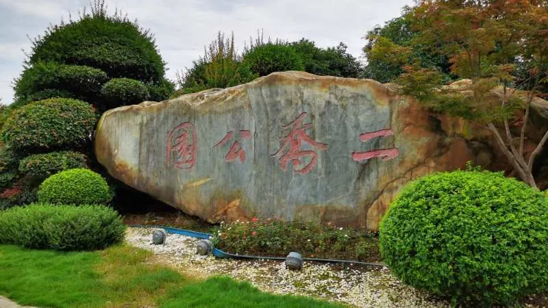 二喬公園裡的二喬來源於三國志裏的大喬與小喬,這裏亭台樓閣、雕樑畫棟、假山瀑布儼然一副江南園林的景色,在這裏似乎可以感受到三國時期的鼎盛文明,白天這裏古樸而典雅,到了傍晚,在夕陽西下華燈初上的時候,這裏彷彿換了一個裝扮,水榭、廊橋、濕地、牌坊等景觀在夜色中顯得更為添色。