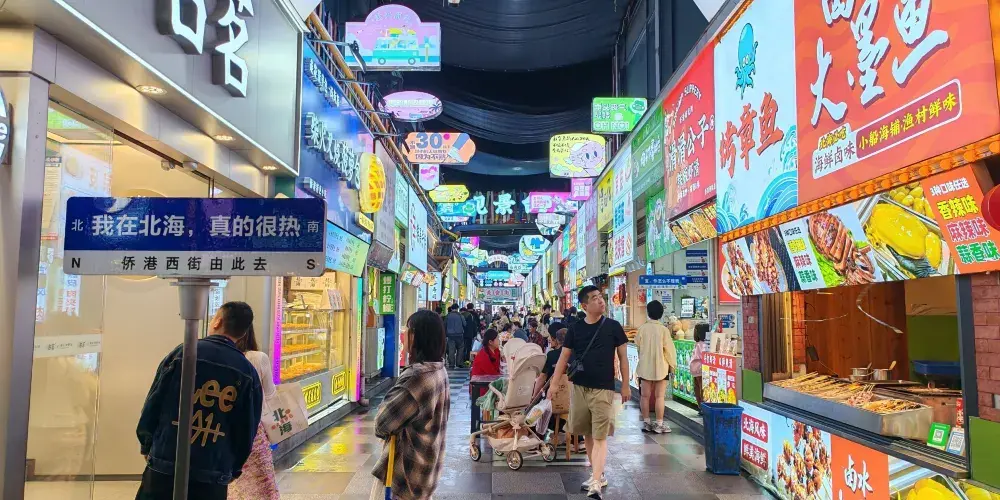 僑港風情街是北海市人氣非常高的美食街。這裡沿街開滿了海鮮燒烤店、各地風味菜館和小吃店,選擇豐富,價格實惠,到了晚上更加熱鬧。由於這一帶是越南僑民的居住地,所以還可以品嚐到地道的越南風味美食。風情街距離海灘很近,白天在海灘遊玩,傍晚欣賞壯觀的日落,然後到這裡品嚐美味的海鮮小吃,非常享受。
