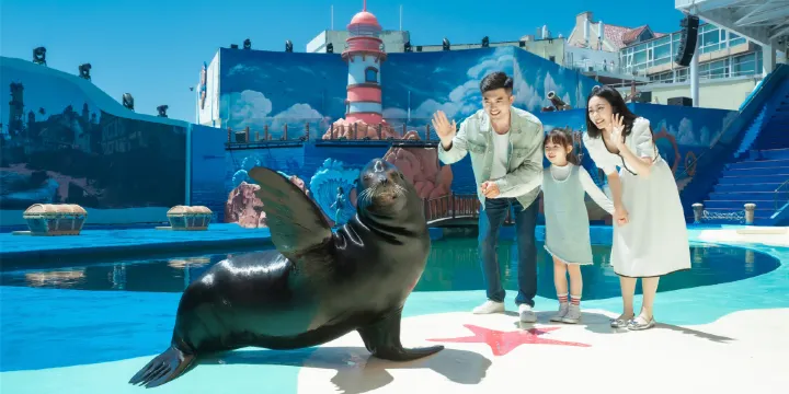 2. 海平線劇場:在瞭望大海的戶外劇場觀賞海象、海獅的逗趣比拼,LED巨幕屏+全方位聲光電效果帶來非一般的視覺盛宴。