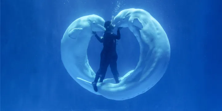 2. 浪漫|白鯨秀:白鯨化身舞者,人鯨共舞譜寫唯美戀歌。