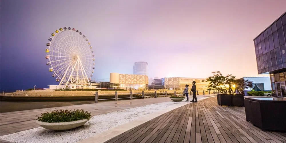 “琴島之眼”摩天輪坐落於青島西海岸新區的唐島灣畔,面朝黃海,是青島海上嘉年華探險樂園的景點之一。乘坐摩天輪,到了高處你可以一覽整個唐島灣的風景,夜間摩天輪會上演多種場景的炫目燈光秀,有時間的話不要錯過哦。