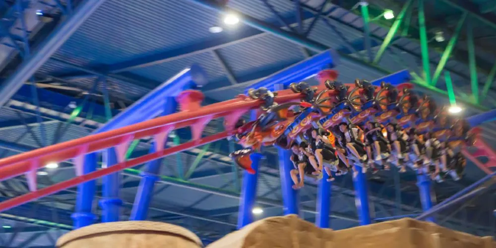 嶗山飛龍—驚險刺激的室內懸掛過山車,猶如一條飛龍從海面騰空而起盤旋在嶗山頂端,在你感慨嶗山壯麗、海面壯闊之時,又如一道閃電潛入「海底」消失,在黑暗深處體驗急速心跳,用響徹雲霄的尖叫聲證明膽量。
