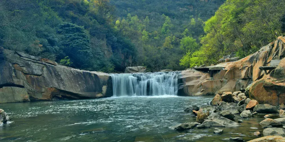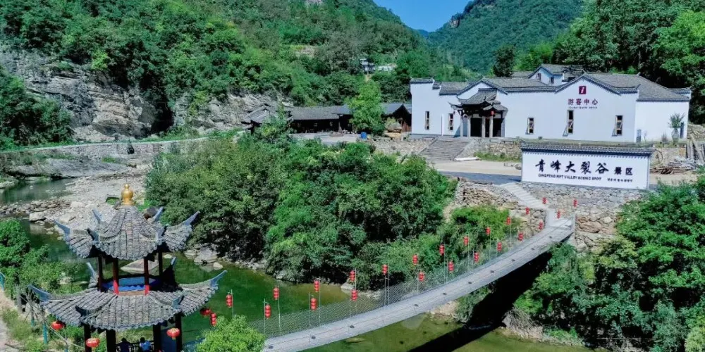青峯大裂谷景區位於湖北省十堰市房縣東部的青峯鎮境內,介於大巴山和武當山之間,是亞洲大斷裂層的中心地帶。青峯斷裂帶是8億年前地球第一次造山運動留下的古老斷裂帶,係湖北大的斷裂帶,地質地貌變化豐富,代表性極強,因此地質學之父李四光先生就將這一大斷層命名為「青峯斷裂帶」,這也是由他命名的地質現象,在地質學術上科研價值與東非大裂谷齊名。青峯大裂谷景區正好處在「青峯斷裂帶」的核心區域,境內山巒起伏,河溝縱橫,峽谷幽奇,潭水清澈,巨石林立、瀑布秀逸,自然風光獨一無二,更是國內華中著名斷裂帶自然遺跡旅遊區。