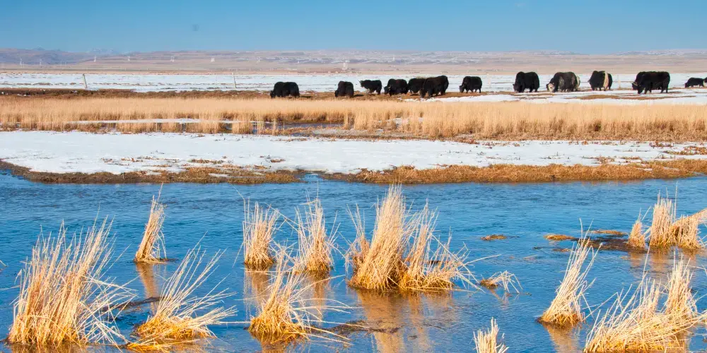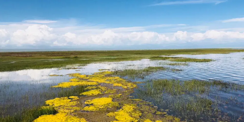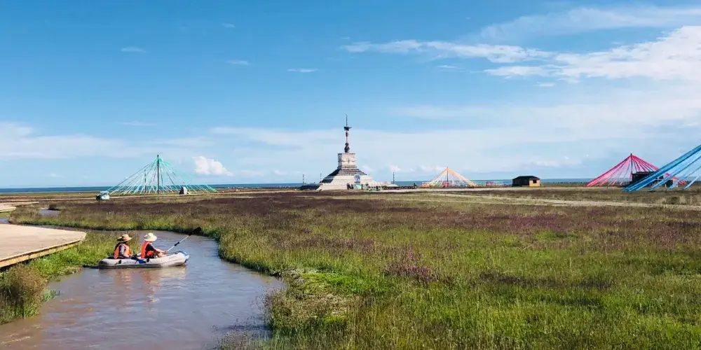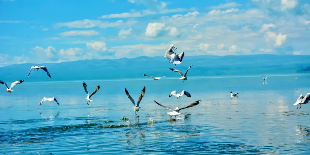 青海湖仙女灣景區位於青海湖北岸,融高原濕地、湖光山色、祭海盛典、藏族風情及神話傳説於一體。仙女灣景區是國家二級保護動物大天鵝的故鄉,秋冬季節有數千衹大天鵝在此棲息。