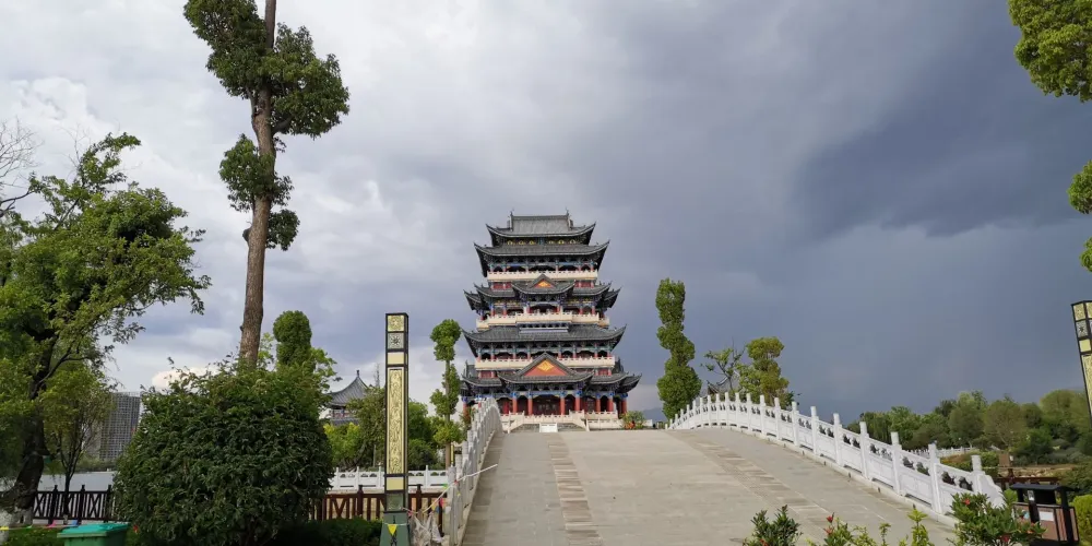 則評價太保公園因座落於雲南省保山市太保山麓而得名。公園林木葱鬱,以松樹、柏樹和樺樹為主,森林覆蓋率達90%以上,是登高俯瞰保山全景的較佳去處。太保山山腰建有玉皇閣和玉佛寺。玉皇閣為明代三層斗拱建築,金碧輝煌,工藝精湛,氣勢雄偉,掛於二層的字匾,從正、左、右三面看卻各為不同的匾文。正看是“至誠無忌”四字;從左看是綠色“龍飛鳳舞”四字;從右看是褐紅色“海晏河清”四字,頗為奇趣。沿着700多級台階上山,山頂建有望城樓、戲台、松苑亭等亭台樓閣,從這裏看下去,整個保山盡收眼底。