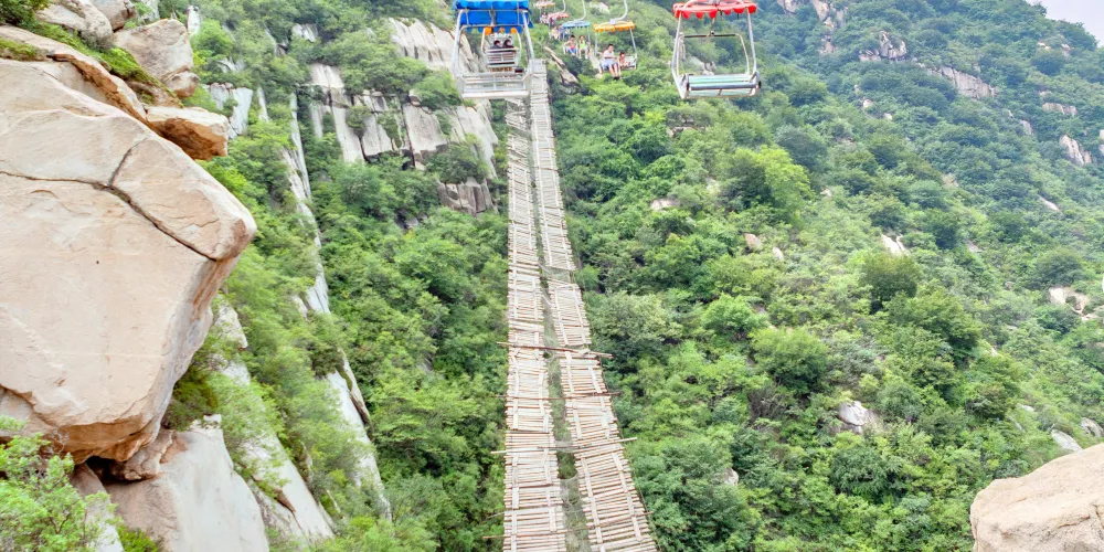 青龍峽風景區,位於北京市的懷柔區。景區的四周是青翠的群山,空氣特別清新,對於生活在都市中的遊客來說,這裡就是一個大氧吧。除了自然風光,遊客也可以參加遊船、碰碰船、快艇等水上游玩項目,喜歡戶外極限運動的朋友,還能試試蹦極和攀岩。在青龍峽景區內游玩時,沿途還可以欣賞到明代的長城。