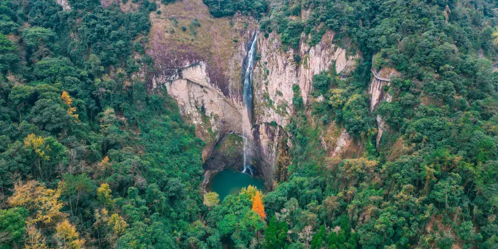 石門飛瀑是石門洞景區內的一處懸瀑,面朝東北,由五級瀑布組成。 石門瀑布群源頭為洞背村,溪流兩岸峽穀上寬約300米,下寬約50米,坡度約60度,呈“V”字形,其水勢、水量為華東三瀑(大龍湫、石樑、石門飛瀑)之首,由於源頭是森林,涵養水源能力強,即使在冬季,水量也是較大,堪稱“華東一絕”。 從一級瀑布至五級瀑布潭底溪流流經長度約800米,總落差約180米,匯水面積達5平方公裡。一級瀑布落差20米,寬2米,潭水面積約150平方米,潭水最深處約5米。一級瀑布前有一條長約80米的鐵索橋架通東西兩側岩壁,使天塹變通途。 二級瀑布落差約22米,寬約2.5米,潭水面積約120平方米,最深處約2米。 三級瀑布落差約7.5米,寬約1.5米,潭水面積約50平方米,深度約1米。 四級瀑面落差約10米,潭水面積約20平方米,最深處約2米。 五級瀑布在石門洞盡端,瀑布從寬約5米,高達112.5米的懸岩峭壁上直泄而下,如蒼龍白蛇飛舞。 瀑下水潭又稱積銀潭,面積約1500平方米,最深處約10米,魚遊潭中,清澈見底。為保持瀑布水流量,於2002年在一級瀑上遊洞背村修建了蓄水量達16萬立方米的水庫,瀑布隨季節變化不大,但雨季為很贊觀瀑期。 石門飛瀑為青灰色石灰岩岩性,石質堅硬。瀑布的形成、發育與地質斷裂有關,山體受張斷裂帶控制,相互排斥斷裂而發生斷層,並在流水的下徹侵蝕下久而舊之,水流沿斷層面傾瀉而導致瀑布的形成下,並不斷衝擊瀑下地表,地表經流匯聚在懸崖和地形落差大的峽穀地區傾瀉而下而形成眾多壯觀的瀑布。