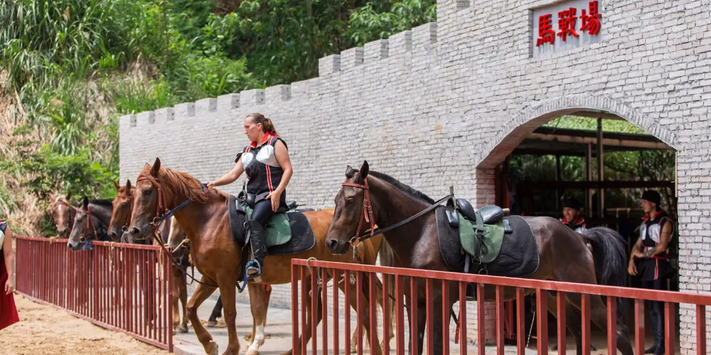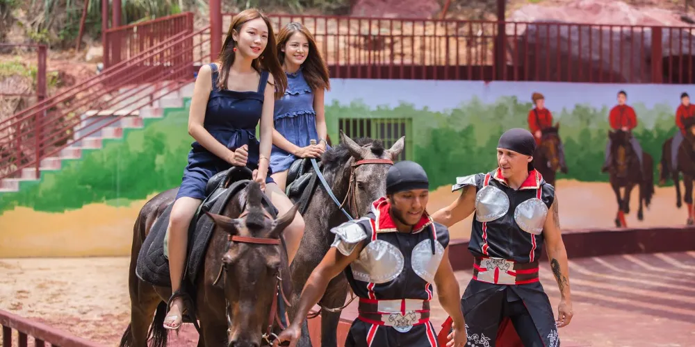 站立於天門懸廊上,透過玻璃俯視下方,峽谷中一切景象清晰可見,北側可觀黃騰峽漂流大峽谷的原始峽谷風光,南側可賞清遠市區高樓林立的城市風貌,西側則可見晚霞紅滿天的落日輝煌。如遇雲霧天氣,整個懸廊矗立於雲霧之上,煞是壯觀,自身則如臨天門,步入仙境。