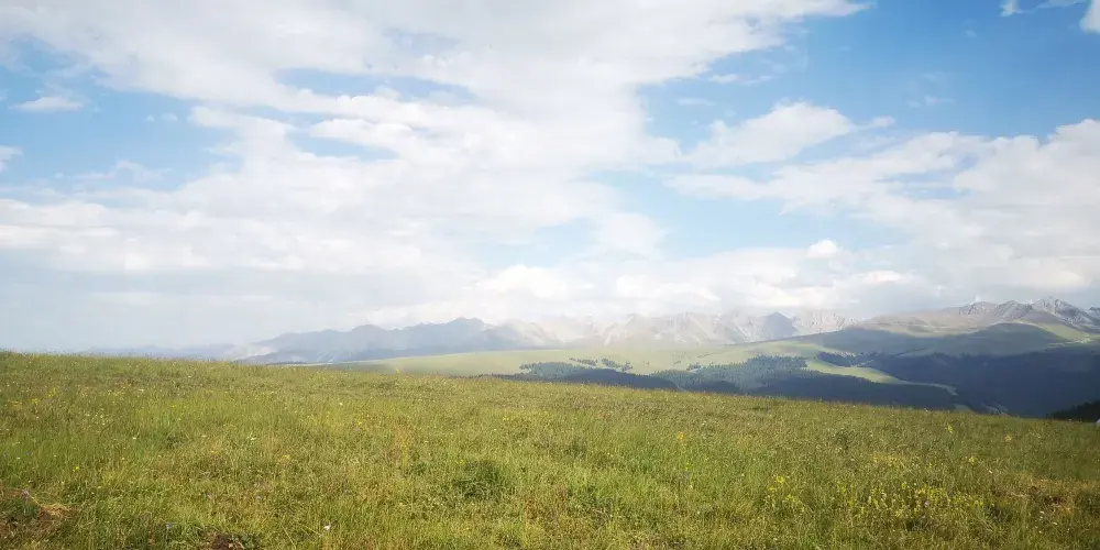 瓊庫什台在哈薩克語中是“大平台子”的意思。這里溝壑縱橫,一條條溝壑橫亙在平靜的草原上就像大海裡掀起的波浪。在這裡,遊客可以看到湛藍的天空、純潔的白雲和銀色的雪山,一幅天然畫卷盡在眼前。這裡還有墨綠的杉林、淡青色的草原和五顏六色的花海,十分美麗。