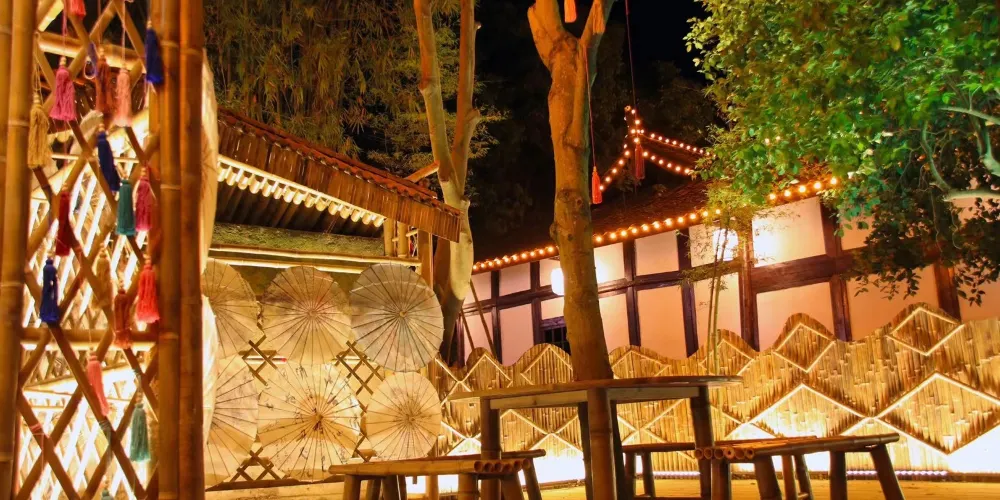 平樂古鎮風情園位於成都邛崍市。該風情園擁有許多樹齡上千年的榕樹,與青石鋪成的街道相結合,孕育出田園詩般的山水情懷。走進平樂古鎮風情園內,好像穿越時光一樣,由此步入了歷史中的農耕歲月,在這裡可以體驗別樣的民俗文化和氛圍。