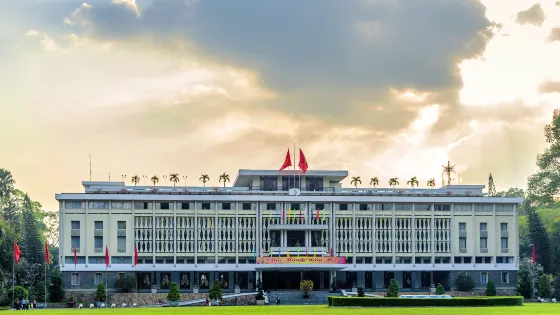 統一宮曾是越南法屬時期的總督府,現為政府會議及國家元首接待的場所,同時也是對國內外遊客開放的歷史遺址。宮殿樓高3層,設有兩座側樓及一層地下室。一樓設有豪華會議室;二樓設有國書遞交室、總統貴賓室、宴會廳及總統辦公室;三樓則設有電影室及娛樂室。統一宮四周綠樹環繞,正門前有一片大草坪及噴泉。