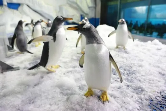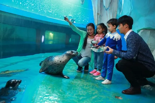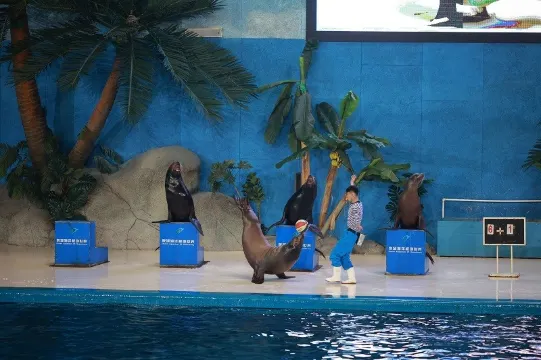 5、極地世界:這裡生活著活潑好動的雪地精靈——北極狐、神態威武的北極霸主——北極熊、機靈活潑的海狗——毛皮海獅、體型龐大的北海獅、南極主人——企鵝、憨厚可愛的海象、美麗華貴的海中金絲雀——白鯨等極地動物;還有室外展館——海獸樂園,可以近距離觀看海豹自由自在地游動和餵食。