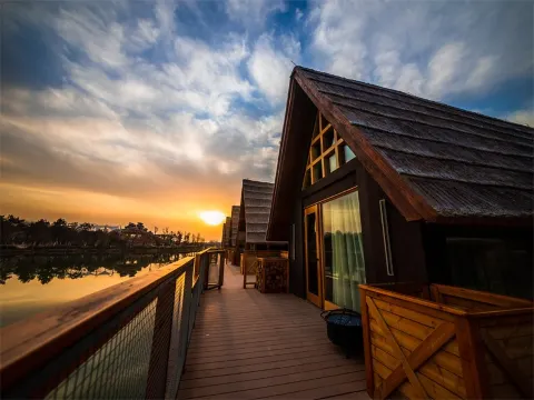 4、湖畔垂釣民宿:位於泉城歐樂堡動物王國內,距離海洋極地世界約10分鐘車程;共7間不同主題的木屋,是輕鬆度過小長假的好去處。住進木屋,坐擁一湖秀水,與家人享受垂釣、燒烤、篝火的親子樂趣。購買酒店套餐,享受VIP待遇:動物王國專屬代步車兩日使用權、主廚定制健康營養餐、湖畔垂釣位、空中纜車與沉浸式互動影院不限次數乘坐體驗、贈送萌寵投餵籃、乘坐遊樂設備免排隊等。