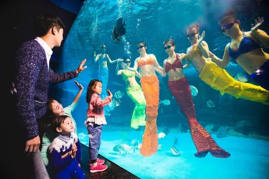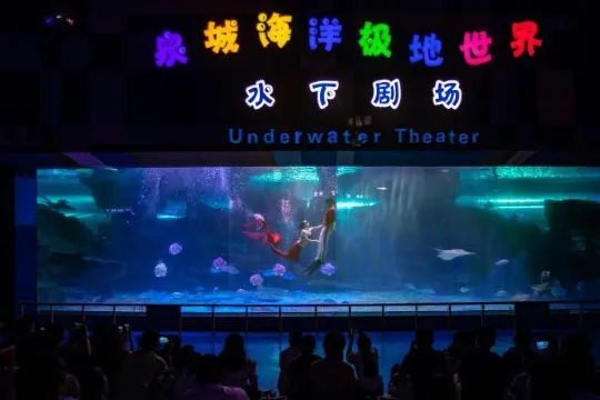 水下劇場,美人魚公主與英俊的王子為大家帶來浪漫的童話愛情──人魚奇緣。動感熱辣的水中芭蕾,呈現花團錦簇、千手觀音等近40組高難度動作技巧,帶來熱情奔放的視聽盛宴。
