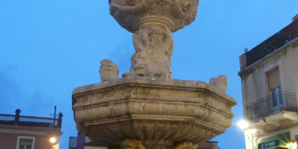 噴泉位於米蘭大教堂廣場前,建於1635年,噴泉中央天使上軀的半人馬座雕塑左手持象徵世界的地球,右手持權杖,是陶爾米納的象徵。