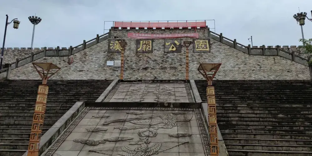 渠縣漢闕公園成梯形狀,分上中下三層:上層用於休閑、娛樂、觀光等,漢闕公園的設計處處彰顯了漢文化元素,公園內的“大漢雄風”雕塑非常壯觀,雕塑主體由漢代雙闕造型和疾馳的漢代戰馬車組成。