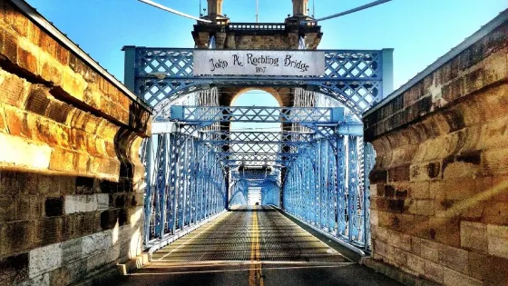 羅比林弔橋是辛那提俄亥俄河上5座橋中最漂亮的一個,位於俄亥俄,肯塔基,印地安納三個州交界的地方,有著悠久的曆史和濃厚的英倫範。橋建造於1850年,由John Roebling的兒子負責建造工程。這裡觀看夜景是個非常棒的選擇,開車的遊客建議把車停在肯塔基這邊,上橋可以觀看到非常美麗的辛辛那提的夜景。