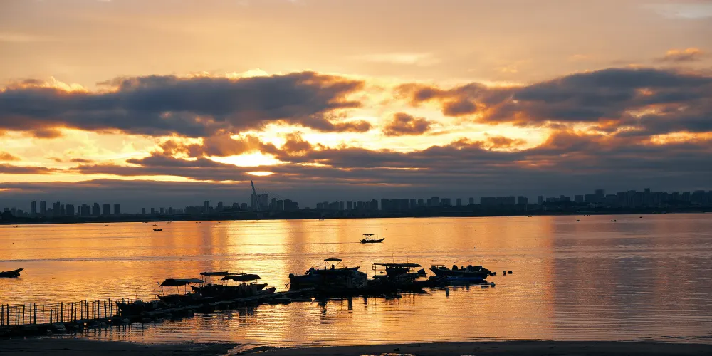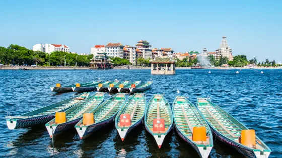 集美學村-龍舟池位於廈門市集美區,是陳嘉庚先生在海灘上築堤圍墾而成,分外、中、內三池,總面積24萬平方公尺。池畔建有式樣各異的七個亭子。景色優美。